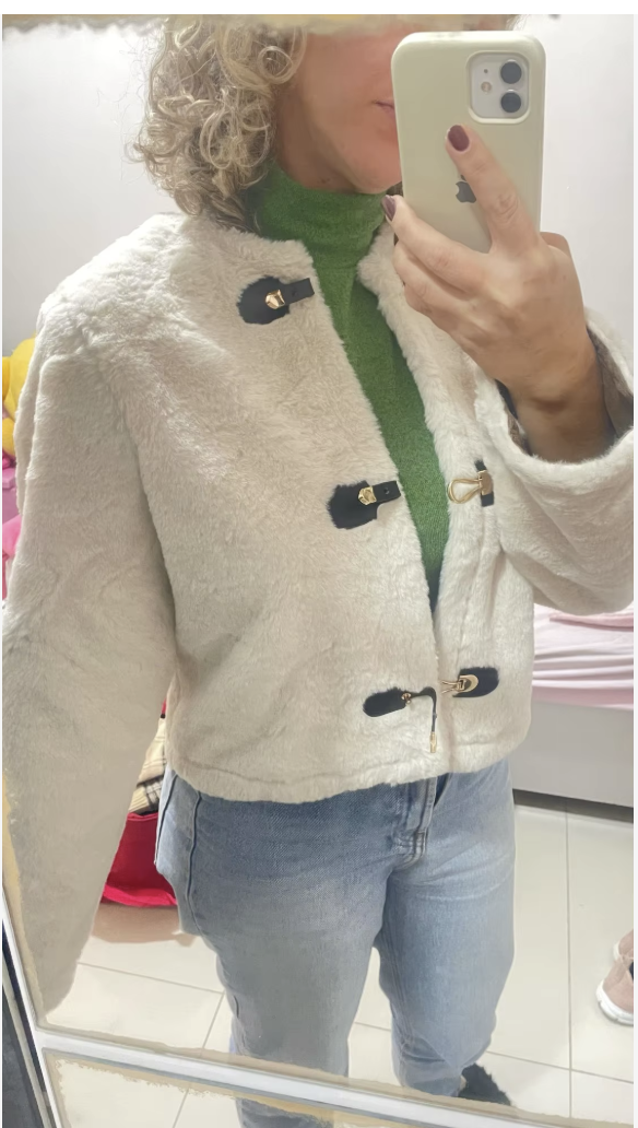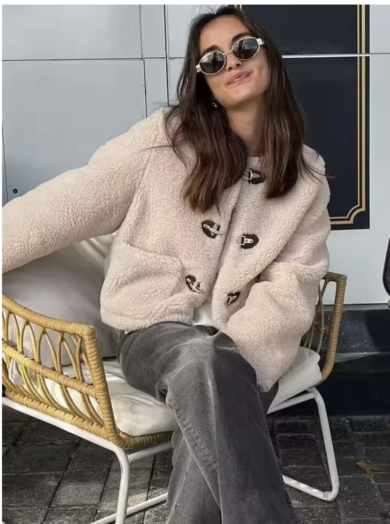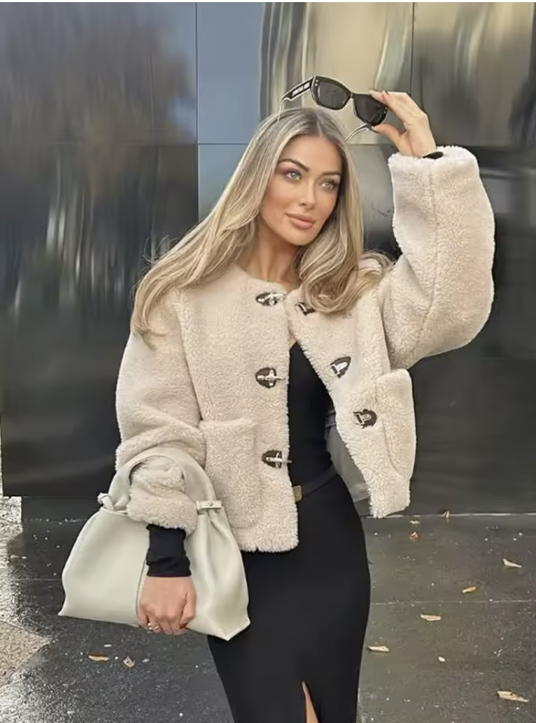 Warm Faux Fur Jacket for Women – Double-Sided Knotted Buckle Coat
